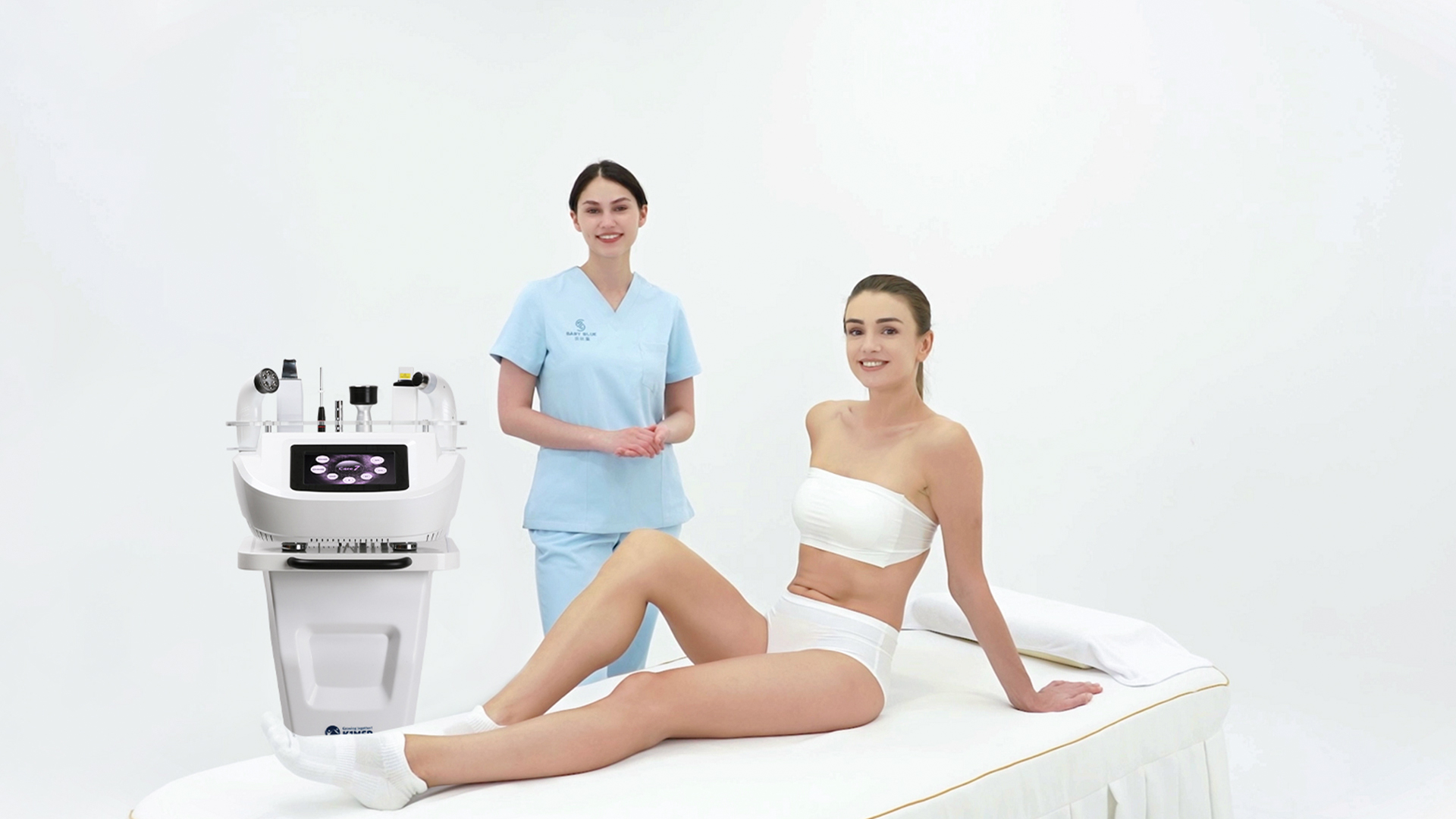 强声波爆脂加上负压射频溶脂结合,结合多级RF探头,将射频热能传递到脂肪层,使脂肪团温度升高,燃烧脂肪团,溶解脂肪分子,利用超强脉冲负压技术将松弛的肌肉引到正轨,缓解浮肿,促进代谢能力,收紧塑形,突显S曲线。