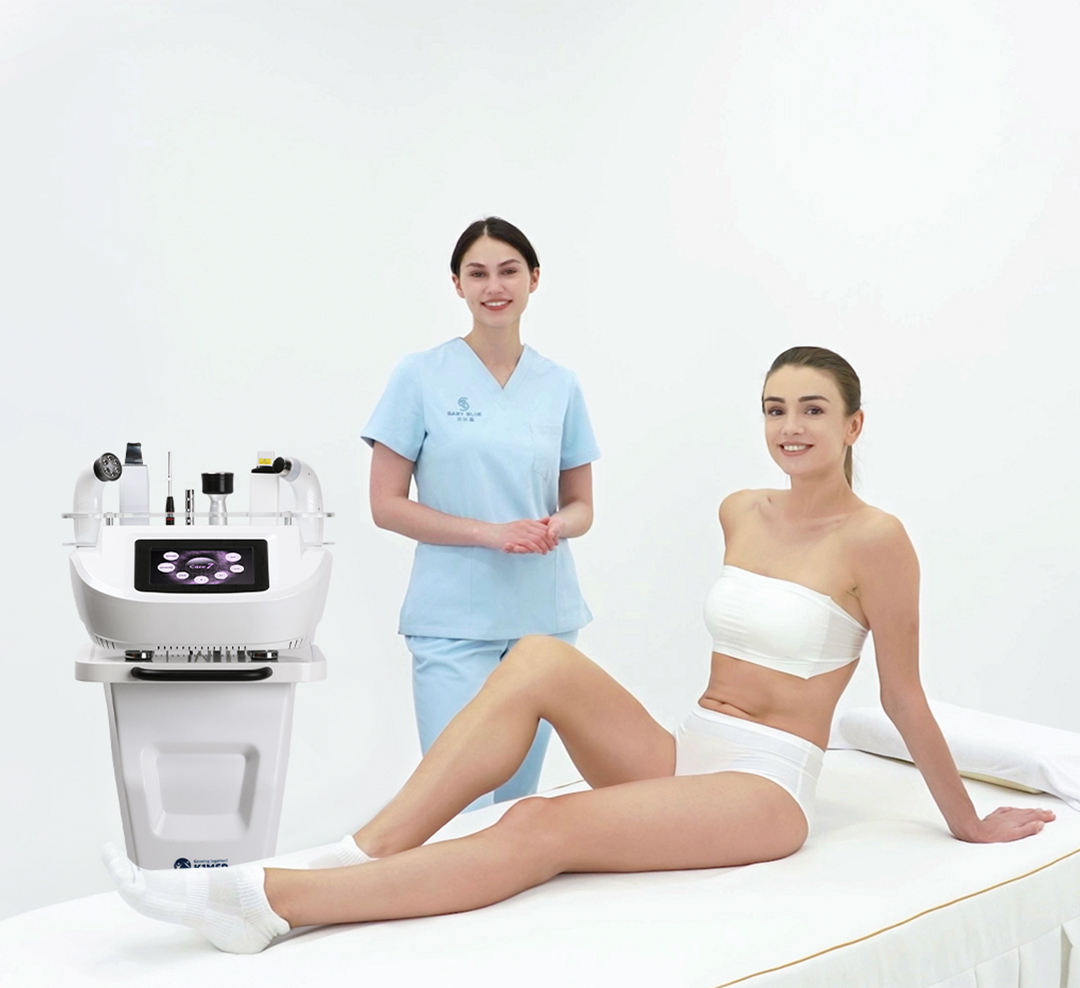 强声波爆脂加上负压射频溶脂结合,结合多级RF探头,将射频热能传递到脂肪层,使脂肪团温度升高,燃烧脂肪团,溶解脂肪分子,利用超强脉冲负压技术将松弛的肌肉引到正轨,缓解浮肿,促进代谢能力,收紧塑形,突显S曲线。